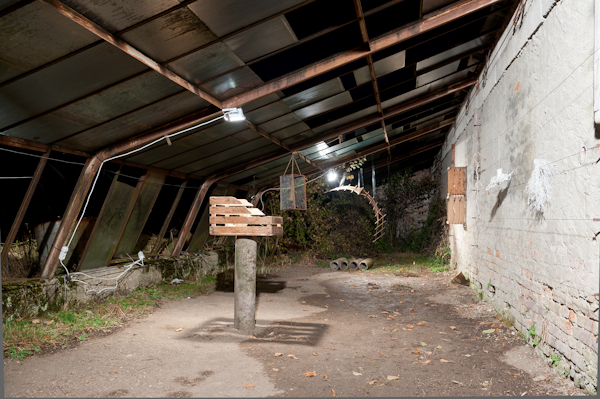 "Eine Videoinstallation zeichnet den mühsamen Weg der Arbeiter auf, die vom nahen Hang Lehm abbauen und als neuen Fußboden in einem der maroden Zimmer verlegen. Immer weider sind in dem überwucherten Gelände, dessen Morbidität noch durch die Herbststimmung verstärkt wird, Entdeckungen zu machen: berührende Liebesbriefe in einem alten Schuppen, zum Beispiel. So ist diese Ausstellung eine Inszenierung des Verfalls."