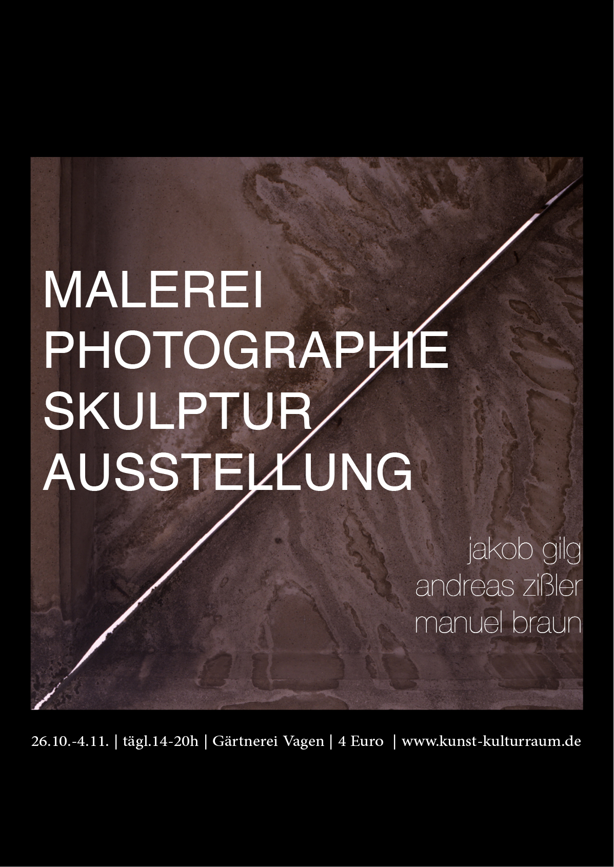 "Drei junge Künstler Jakob Gilg, Fotograf und Maler, Andres Zißler, Architekturstudent und Manuel Braun, Regisseur und Videokünstler, setzen dies in die Tat um in der alten, seit fahst zehn Jahren aufgelassenen Gärtnerei am Schloss mit 6500 Quadratmetern Grund, auf dem die Gewächshäuser, ein Wohnhaus und Nebengebäude langsam vom Efeu überwuchert werden. Sie verwandelten sich mittels Fotografien, Skulpturen, Bildern und Videoinstallationen in eine Galarie. Ein Experiment das gelingt.